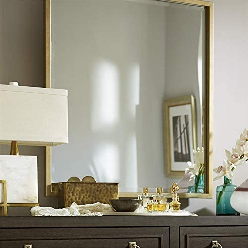 The Antiqued Brass Mirror gleams with a beveled center highlighted by a svelte aged brass frame. Perfect as bathroom or bedroom makeup mirror.